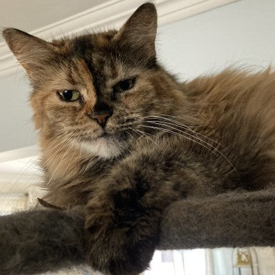 Indépendante, petite et très expressive, elle miaule sans cesse jusqu'à obtenir ce qu'elle veut, même malgré ses 15 ans.